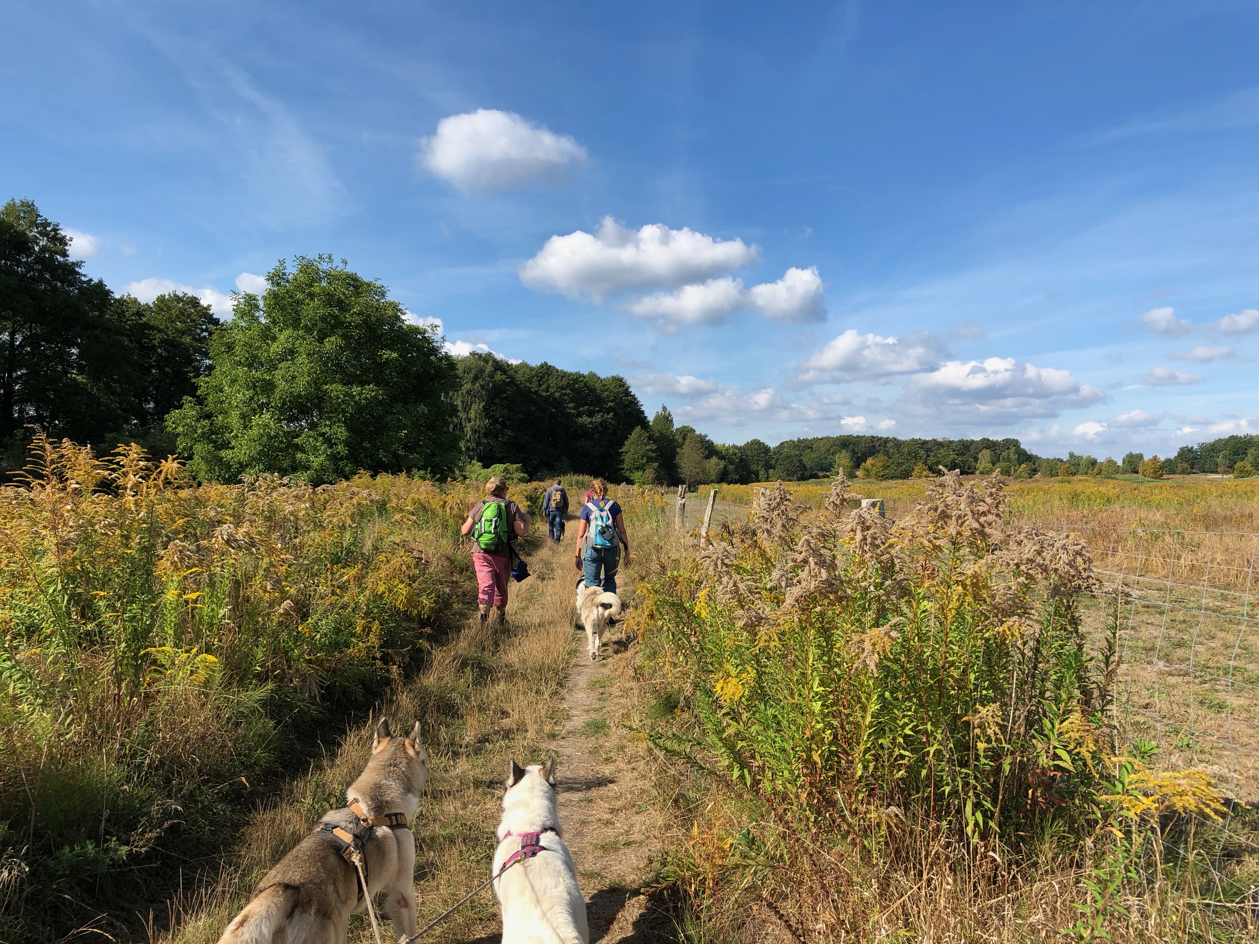 Den Pfingstsonntag haben wir mit einer Runde entlang des Genshagener Naturlehrpfads begonnen. Mit dabei war die Truppe vom Gassitreff TKS, wir waren also mit zwölf Personen und dreizehn Hunden – in allen Größenordnungen, vom 3 kg Zwergpudelmädchen bis zum 45 kg Ridgebackrüden – unterwegs.
