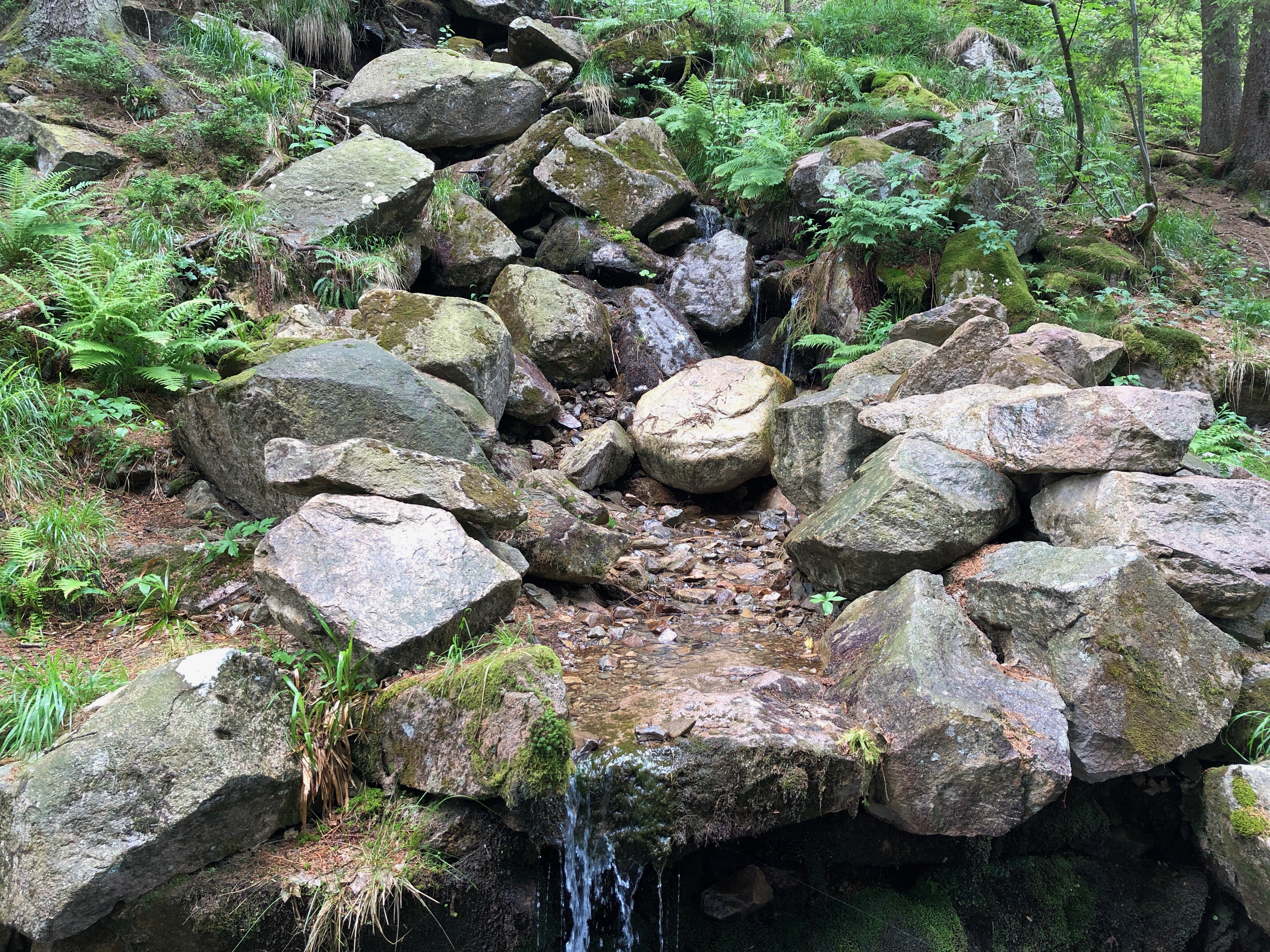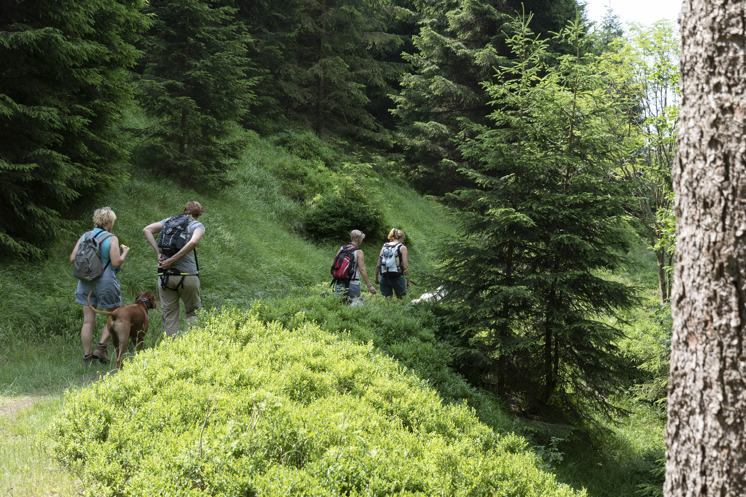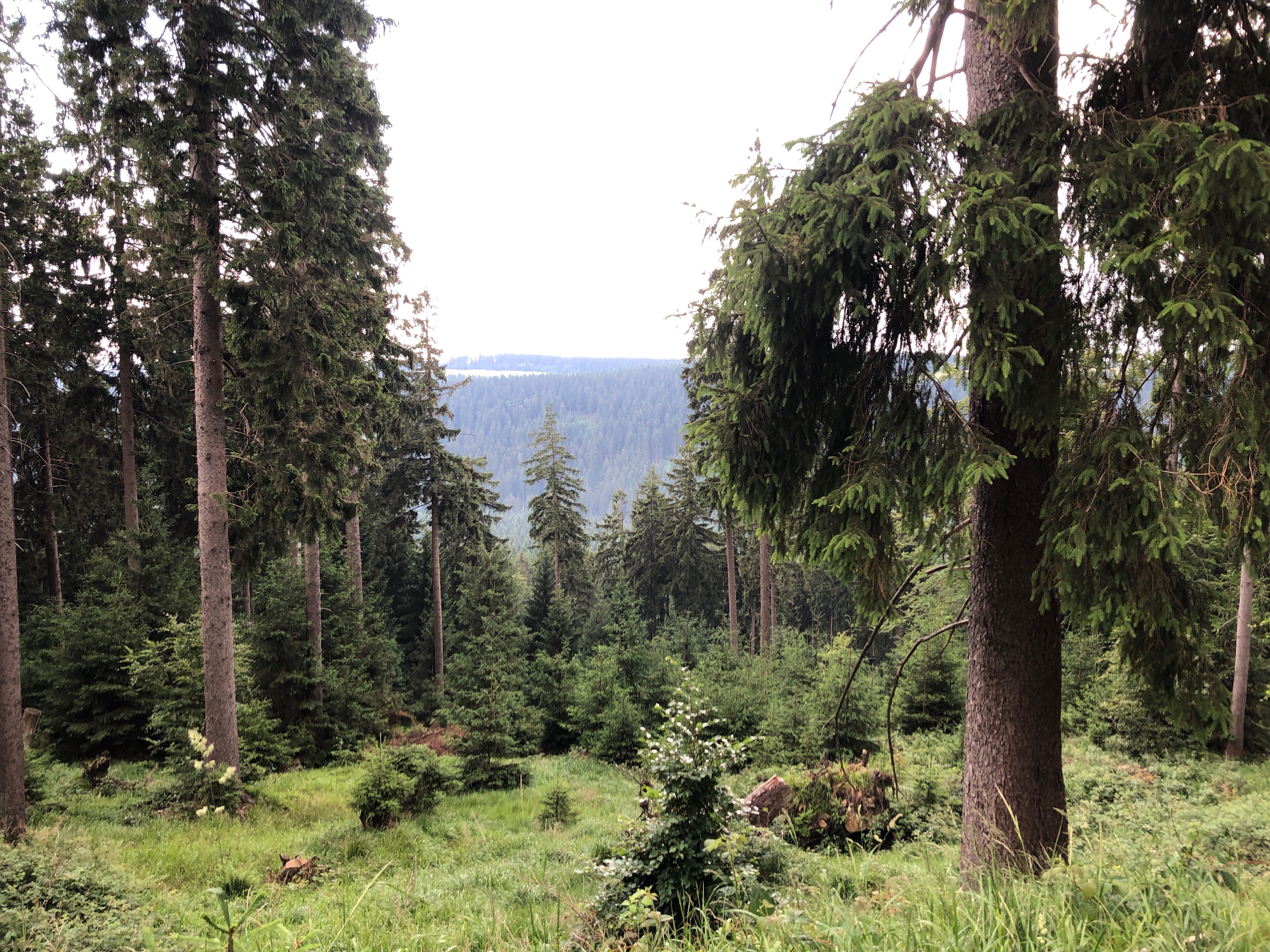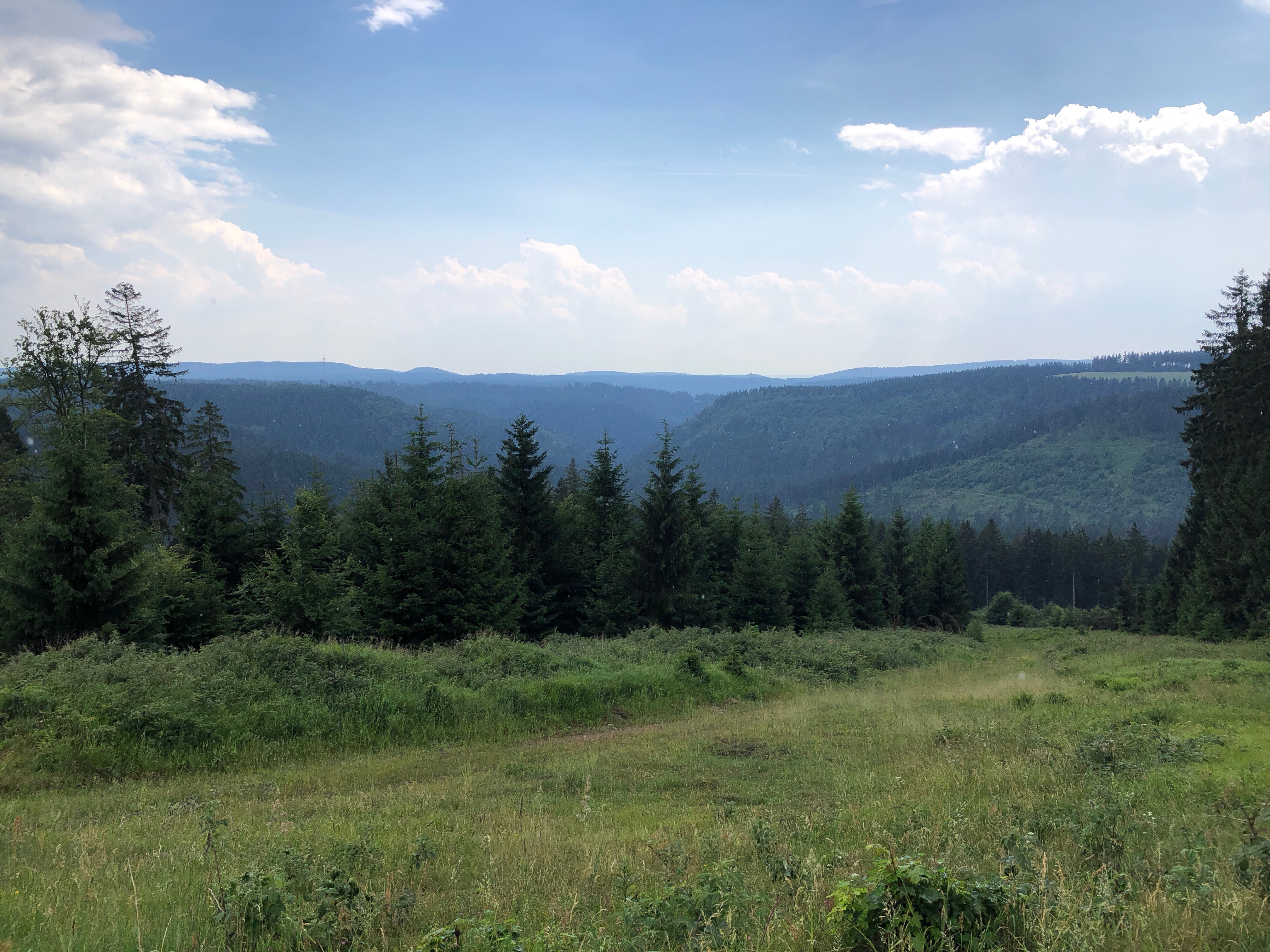 Da uns die Hitze schon schwer zu schaffen machte hat irgendjemand heimlich – aber sehr erfolgreich – einen Regentanz getanzt. Jedenfalls ging auf einmal ein Gewitter mit Starkregen über uns nieder. Wir haben dann mehr oder weniger erfolgreich Deckung unter einigen Tannen gesucht. Klatschnass ging es weiter zum Rehberger Grabenhaus, wo dann der Lufttrocker auf dem Damen WC Überstunden schieben durfte.