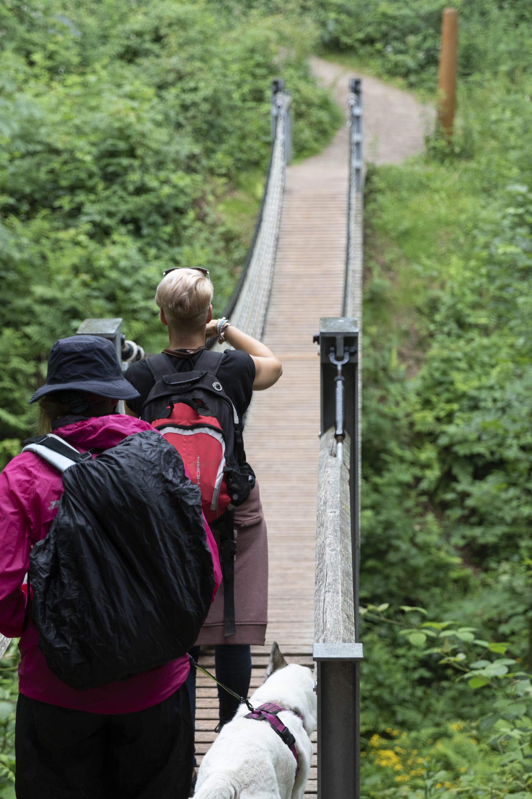 Am Sonntag vor der Rückfahrt haben wir dann noch einen kurzen Abstecher in den Weltwald in Bad Grund gemacht. Das uns allen, sogar den Hunden, die Strecke vom Vortag noch in den Knochen steckte und das Wetter auch nicht sehr einladend war, ist es bei einer kleinen Runde geblieben. Für die Hunde gab es als kleine Mutprobe eine wackelige Hängebrücke zu überqueren.